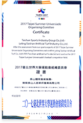 2017台北世界大学运动会组织委员会证书致乐陵jiuyou人造草坪产业有限公司